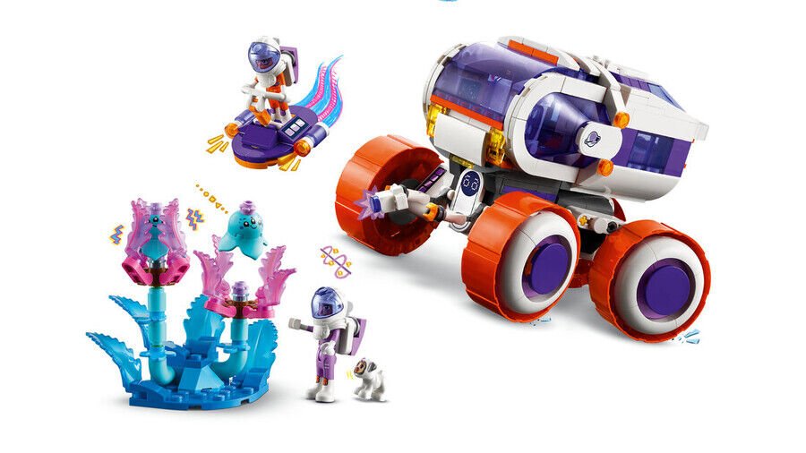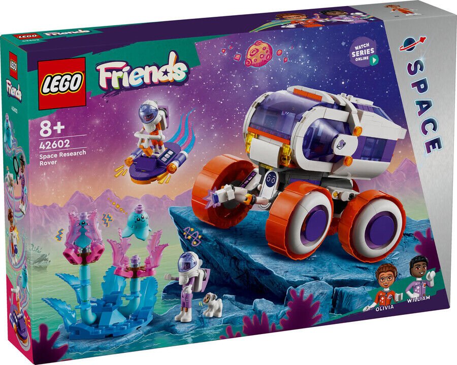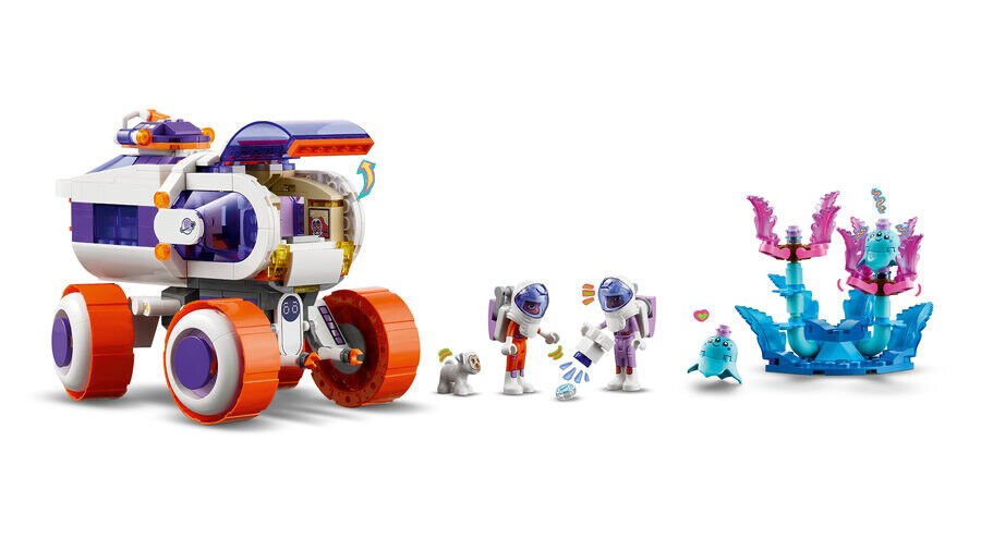 - Çocuklar için uzay macerası araçlı oyuncak – 8 yaş ve üzeri kız ve erkek çocuklar için tekerlekli LEGO® Friends Uzay Araştırma Aracı oyuncağı, 2 LEGO Friends mini bebek, bir köpek figürü ve 2 uzaylı figürü içerir;