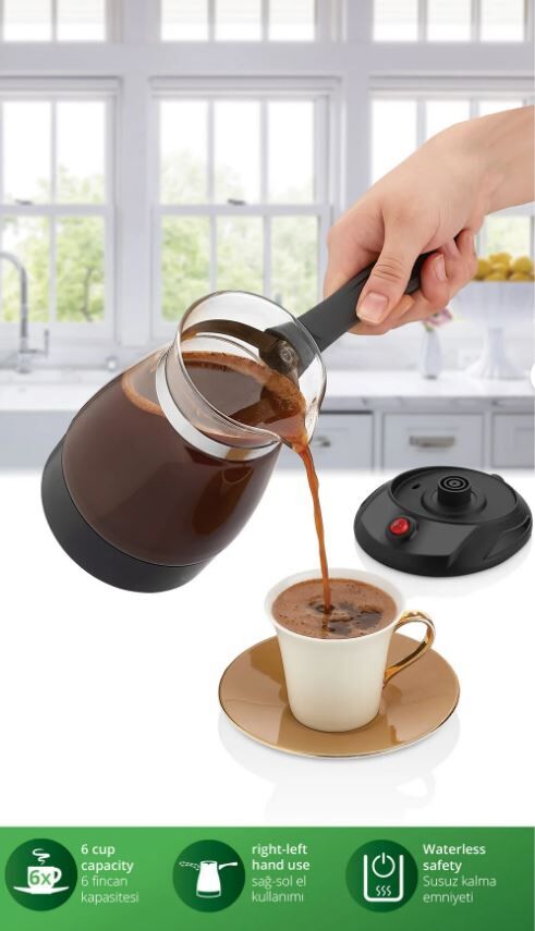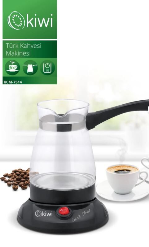 Kiwi KCM 7514 Cam Elektrikli Cezve, mutfağınızda gelişmiş bir kahve deneyimi ve pratiklik sunan eşsiz bir cihazdır. 800 Wattlık yüksek güç kapasitesi sayesinde en hızlı sunumları yapmanıza olanak tanıyan bu şık ürün, zamandan tasarruf etmenizi sağlar. Kiwi KCM 7514 Cam Elektrikli Cezve, 400 ml su kapasitesi ile tek seferde 6 fincan taze ve lezzetli Türk kahvesi hazırlamanız için özel olarak tasarlanmıştır.