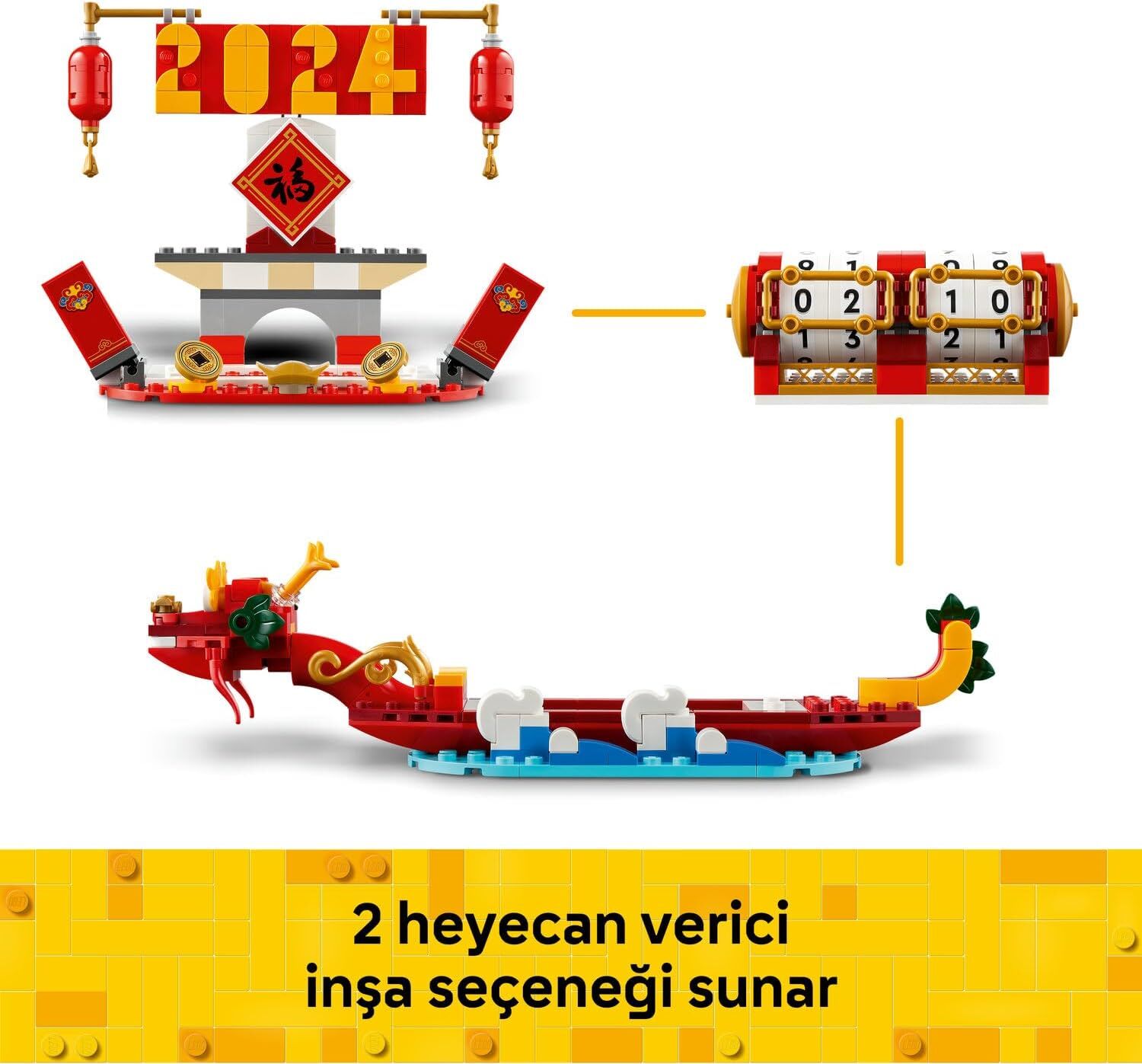 - LEGO Festival Takvimi – Yeni Ay Yılı veya Dragon Boat Festivali temalı 2 inşa seçeneğiyle yaratıcı bir yapım ve oyun deneyimi sunuyor