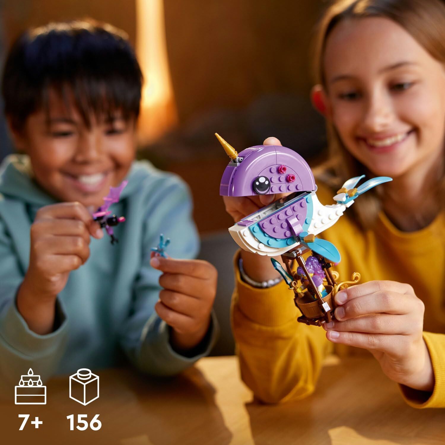 Sette yer alan Izzie minifigürü, Grimspawn ve küçük Bunchu karakterleri ile oyun saati çok daha heyecanlı hale geliyor. LEGO DREAMZzz Izzie'nin Deniz Gergedanı 71472 modelinin ağzı açılabilen okyanus hayvanı tasarımı ve başındaki ikonik boynuzu, çocukların kendilerini hikayeye kaptırmasını sağlıyor. Sıcak hava balonu modunda 16 cm yüksekliğe ulaşan LEGO DREAMZzz Izzie'nin Deniz Gergedanı 71472, hem aktif oyun hem de oda sergileme için mükemmel boyutlara sahiptir.