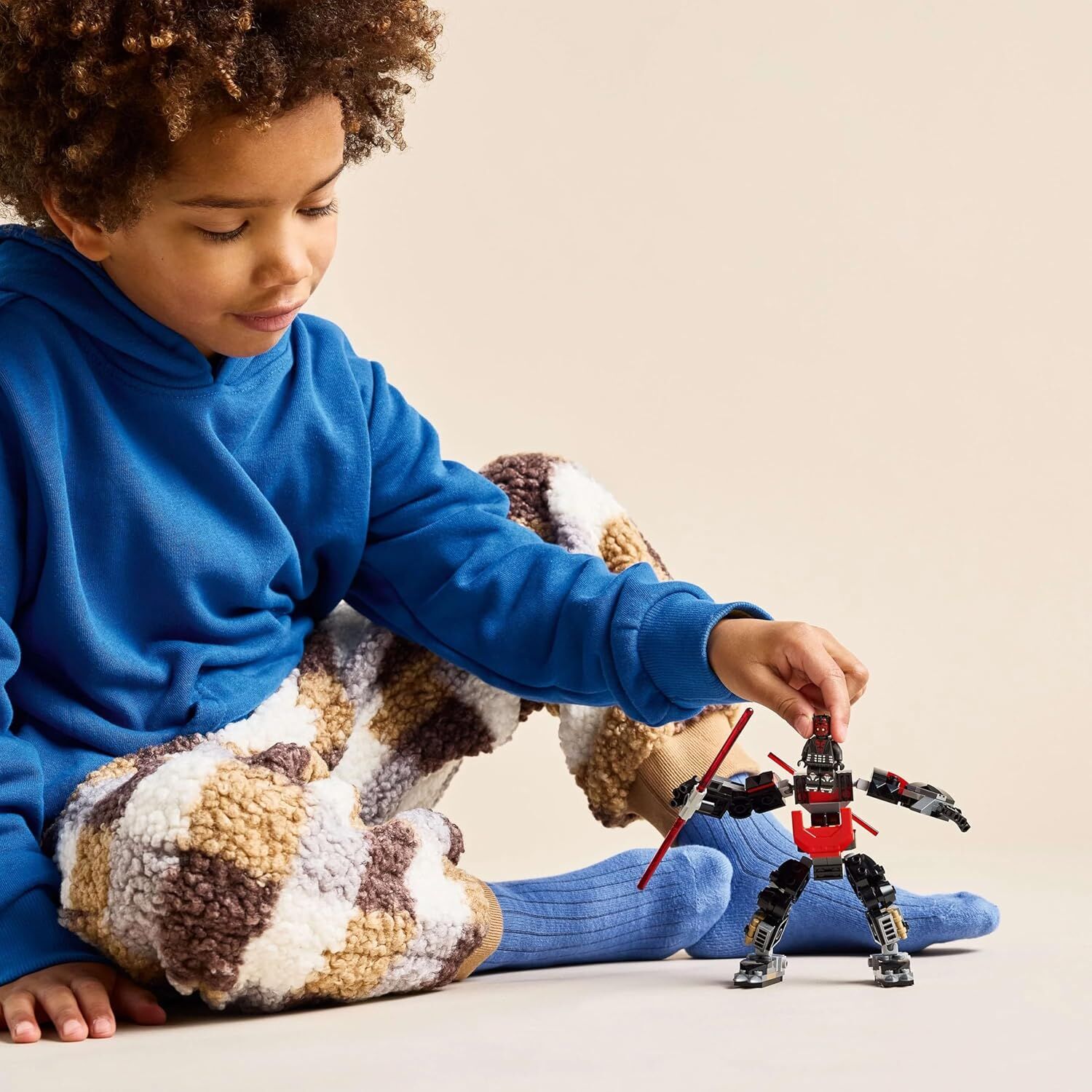Set içerisinde yer alan Darth Maul minifigürü, LEGO Star Wars: Klon Savaşları Darth Maul Robotu 75411 üzerindeki açılan kokpite tam olarak yerleşir. Ayrıca robotun arkasına takılabilen efsanevi çift taraflı kırmızı ışın kılıcı ve bir Arama Droidi ile oyun saatleri çok daha heyecanlı hale gelir.