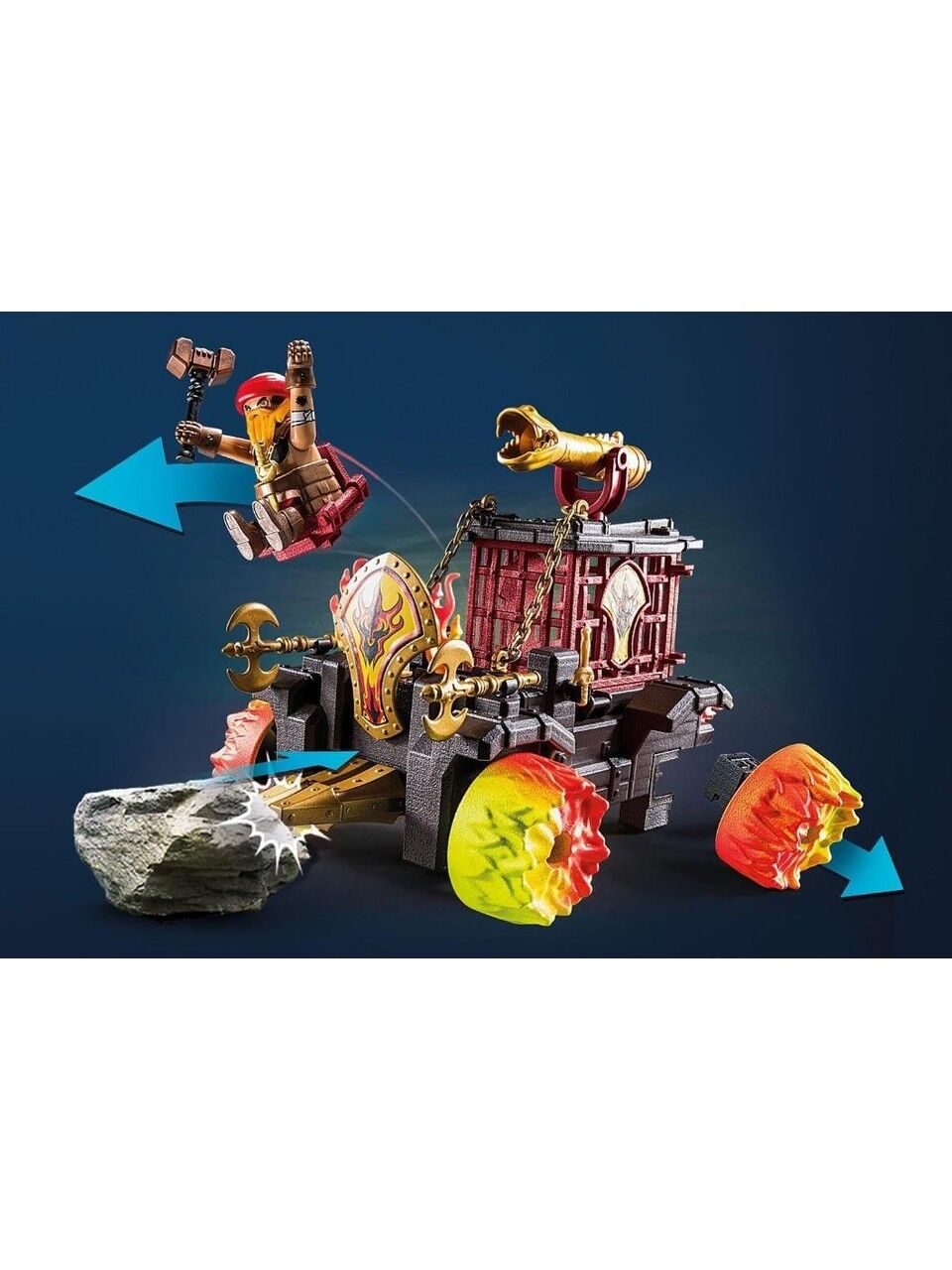 - Sulphur’un dalışı: Büyük ateş arabalarıyla heyecan verici şövalye düellolarında Sulphur ve Burnham Raiders'a katılın. Sulphur’ün koçbaşıyla rakiplerine çarpıp onları gökyüzüne fırlattığı heyecan verici fırlatma koltuğu işlevini deneyimleyin